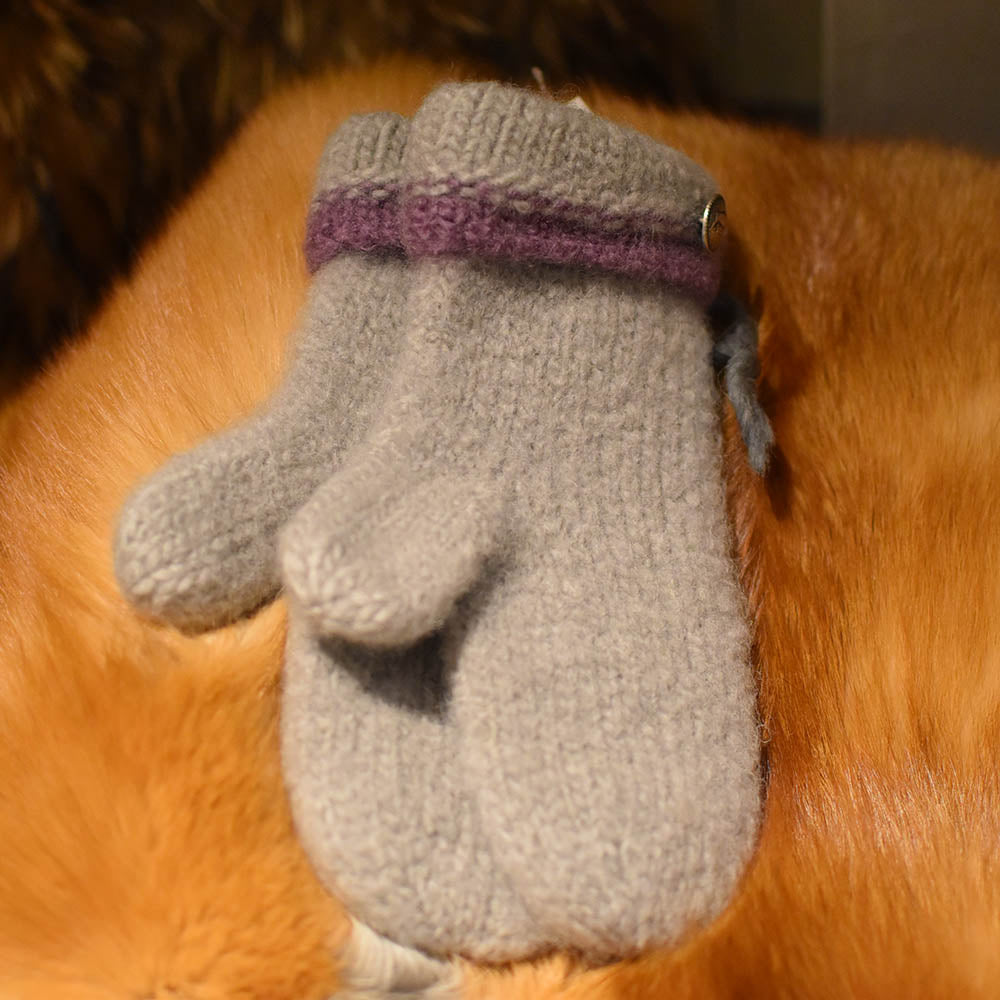 Mitaine de laine bouilli beige-mauve