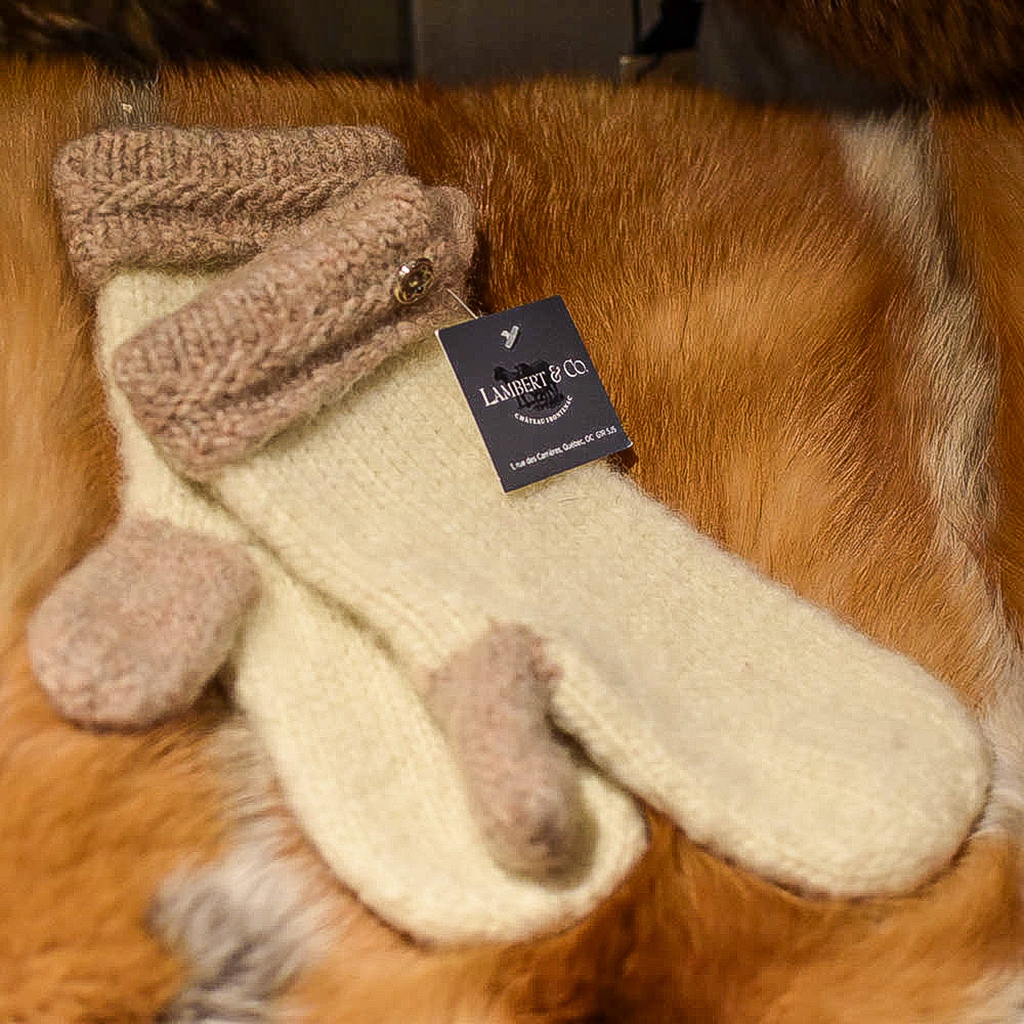 Mitaine de laine bouilli crème rose