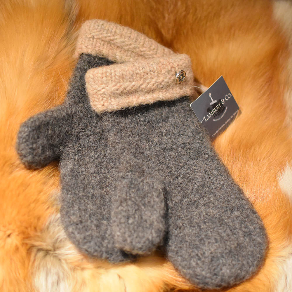 Mitaine de laine bouilli gris rose