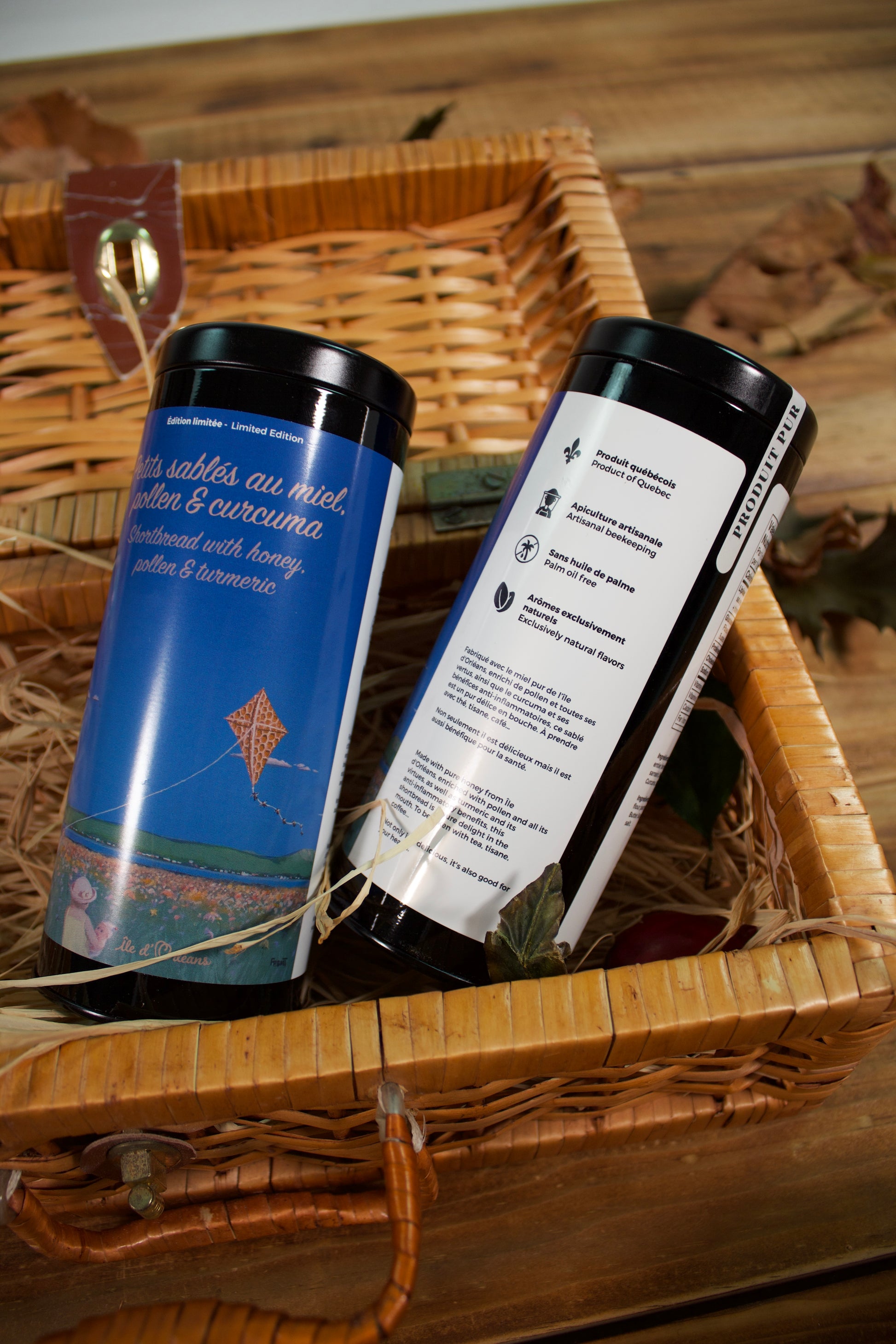 Fabriqué avec le miel pur de l'île d'Orléans, enrichi de pollen et toutes ses vertus, ainsi que le curcuma et ses bénéfices anti-inflammatoires, ce sablé est un pur délice en bouche. À prendre avec thé, tisane, café...