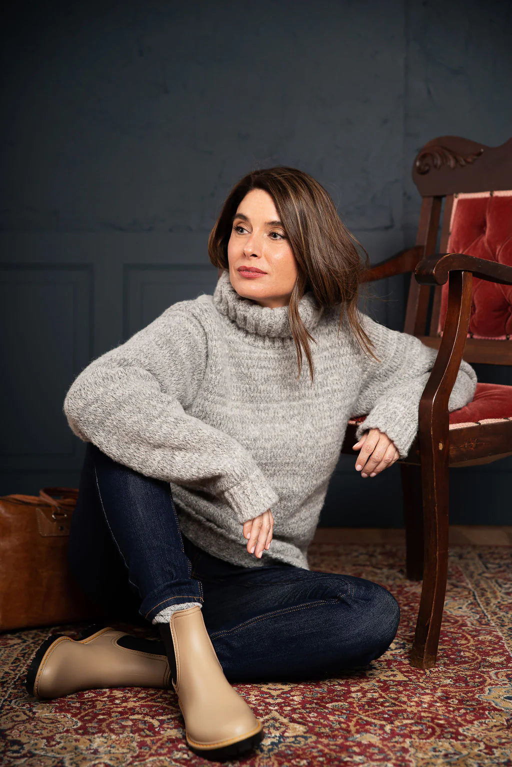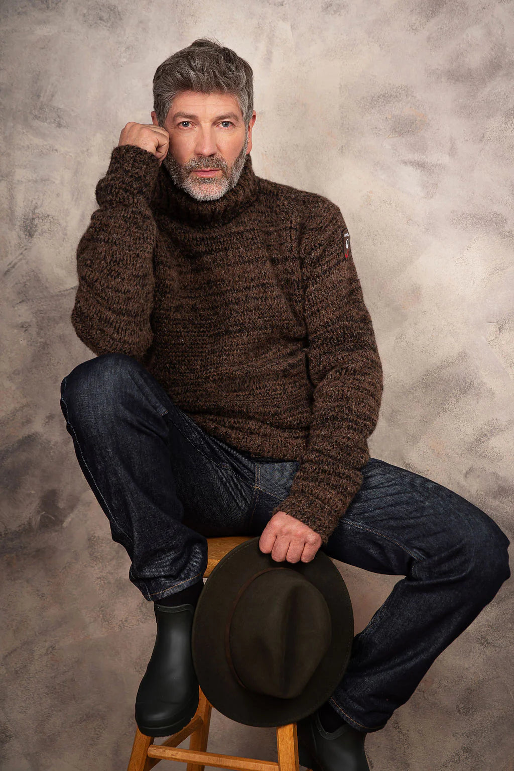 -Vous serez étonné du caractère aérien de ce tricot, assuré par un mélange de fibres savamment sélectionnées; l'alpaga, le bébé alpaga (très fin) offre une douceur incomparable tandis que la laine de mérinos y ajoute un peu plus de corps.
